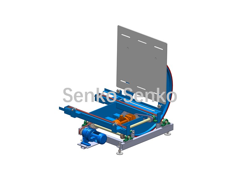 Após o empilhamento, os blocos são transportados por uma esteira rolante até o mecanismo de empilhamento e giro. Este mecanismo gira os blocos empilhados em 90 graus, permitindo a remoção das aberturas por uma empilhadeira. Isso elimina a necessidade de giro manual, economiza mão de obra, evita acidentes e protege os blocos contra danos.