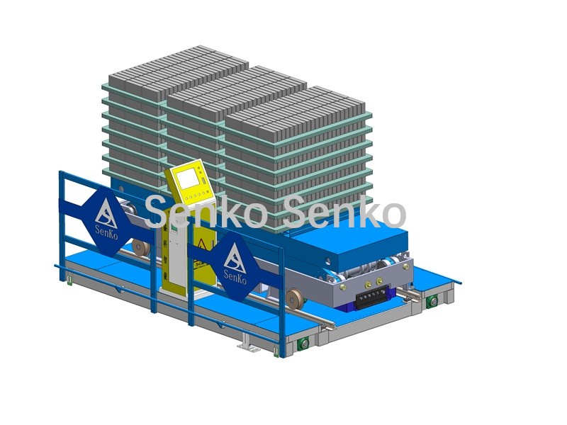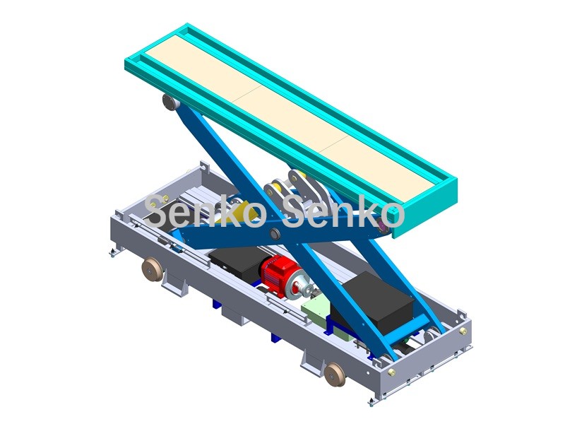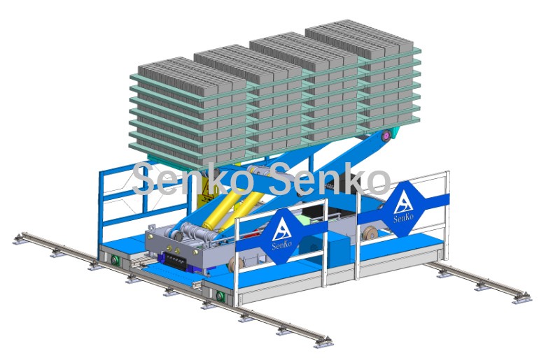 O mecanismo de elevação do carrinho de transporte levanta o item, e o carrinho se desloca até a posição designada de acordo com o alvo predefinido. Em seguida, ele desce para depositar o item, transferindo-o de um local para outro, ou seja, realizando a transferência do item. (Quando o carrinho de transporte multinível é elevado, ele pode parar em várias alturas diferentes para atender às necessidades de armazenamento e recuperação de fornos de cura multiníveis.)