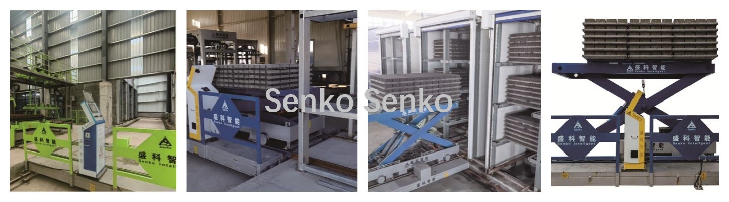Os RGVs podem integrar diversos mecanismos de transferência, como roletes, garfos e elevadores, para atender com flexibilidade às necessidades de transferência de diferentes formatos de materiais, incluindo blocos de tijolos, tijolos secos e blocos acabados. Como elo de ligação entre diversas unidades de produção isoladas, os RGVs são unidades de execução essenciais para alcançar "fábricas sem intervenção humana" e produção inteligente. Através da integração com um sistema de controle central, é possível realizar a operação totalmente autônoma, liberando os trabalhadores do manuseio manual e reduzindo significativamente a taxa de quebra de blocos de tijolos durante a transferência. Com base em um sistema de agendamento de RGVs em rede, é possível realizar operações colaborativas com múltiplos veículos e otimização de rotas, melhorando consideravelmente a eficiência de todo o sistema logístico. Em algumas oficinas de ponta com produção totalmente autônoma, RGVs com rotas fixas e robôs AGV sem trilhos podem trabalhar em conjunto para construir uma rede logística inteligente tridimensional mais flexível. Como nós de dados, os RGVs podem fornecer feedback em tempo real sobre seu status operacional e informações de localização para a plataforma de dados, auxiliando nas decisões de produção, previsão de falhas e gestão enxuta.