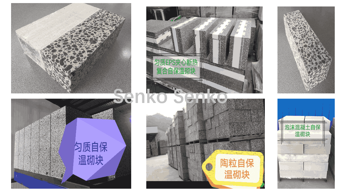 1. Principais vantagens do produto: Os blocos produzidos possuem vantagens notáveis, como leveza (flutuam na água), isolamento térmico (baixa condutividade térmica), resistência ao fogo (classe A, não combustível) e reaproveitamento de resíduos (utilizando resíduos industriais, como cinzas volantes).