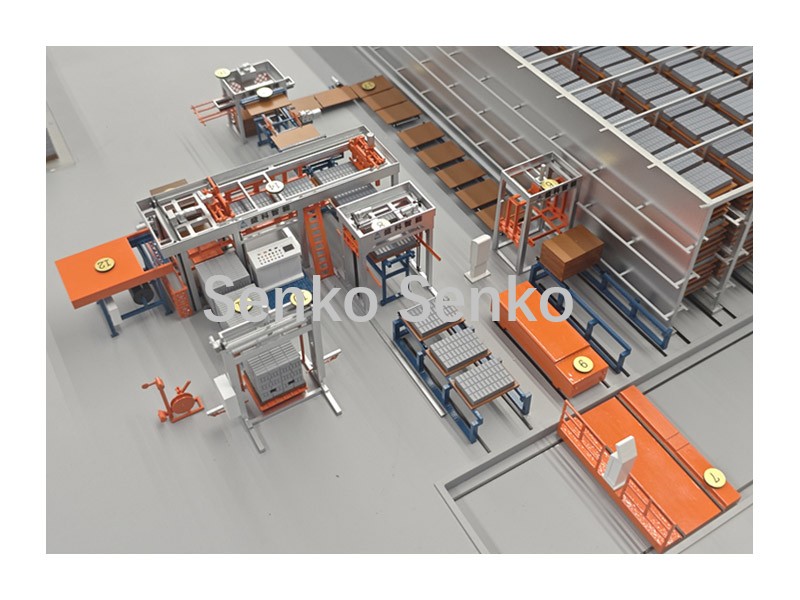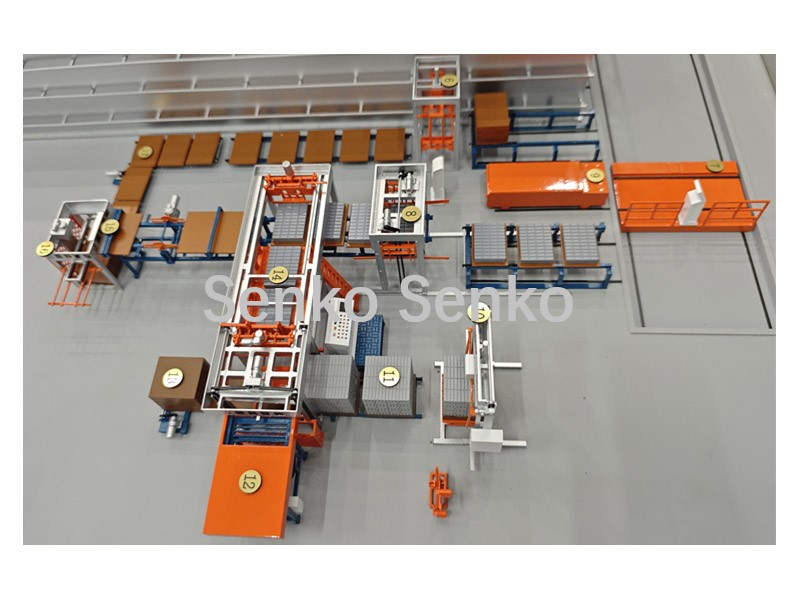 | 11. Máquina de conformação | 12. Reciclagem de paletes | 13. Transferência de paletes | 14, Paletizador | 15, carrinho de transferência |