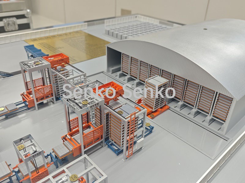 | 7, Transportador de paletes de tijolos | 8. Alimentação de paletes em racks | 9, Unidade de transferência de rack | 10, Carrinho de transferência | 11,RGV | 12, Forno de cura |