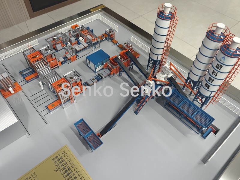 | 1. Máquina de dosagem | 2. Transportador de material base | 3, Misturador | 4, Silo de cimento | 5, Transportador espiral | 6. Máquina de conformação |
